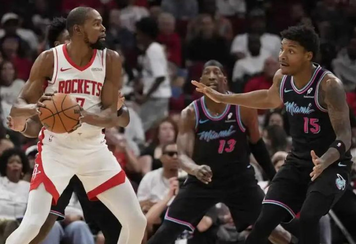 北京时候3月22日,迈阿密热火队赶赴客场挑战休斯顿火箭队。热火队正处于一波3连败之中,鲍威尔、维金斯、哈克斯缺阵,韦尔、拉松带伤出战,热火队首发五虎为阿德巴约+希罗+米切尔+丰泰基奥+拉松。火箭队这边,申京带伤出战,泰特时隔1个月后迎来复出,火箭队首发五虎为阿门+谢泼德+申京+杜兰特+小贾巴里史小姐。