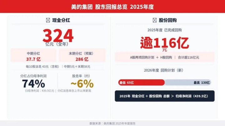 好意思的2025年分成预测总和是324亿,中期分了37.7亿,全年归母净利润的74%拿出来分成,然后回购了116亿,差未几花光了2025年的利润。