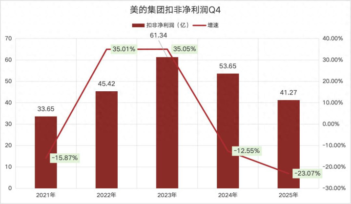 好意思的集团发布了2025年Q4财报,四季度收入937.86亿,扣非净利润41.27亿,收入增速还有6%,但利润增速下跌了23.07%。