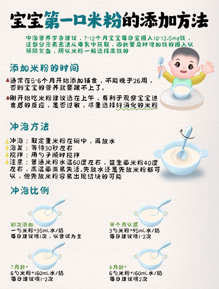 好多老东谈主会合计“米汤养东谈主”或者“蛋黄有养分”,但关于初添辅食的宝宝来说,富含铁的婴儿米粉才是首选。
