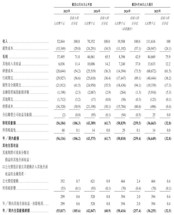 德适生物2025年前9个月营收为1.12亿,毛利为8467万元,期内耗费为3665万元。
