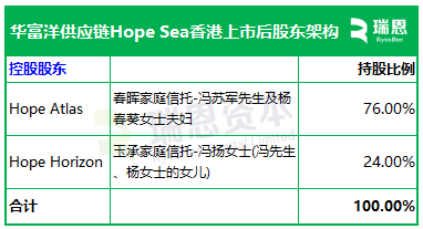 冯扬女士的玉承家庭信赖,通过HopeHorizon握股24%。