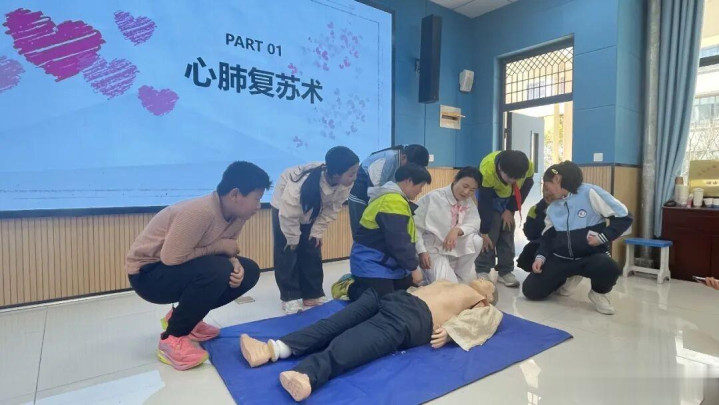 行为现场,急诊科刘能武主任要点素养并演示了心肺复苏操作程序、海姆立克法等中枢急救时间,通过表面素养、行为示范、模拟实操、一双一率领的模样,抽象拆解按压位置、发力力度、施救步履等要道要点,让在场每位学生掌抓黄金急救时间。