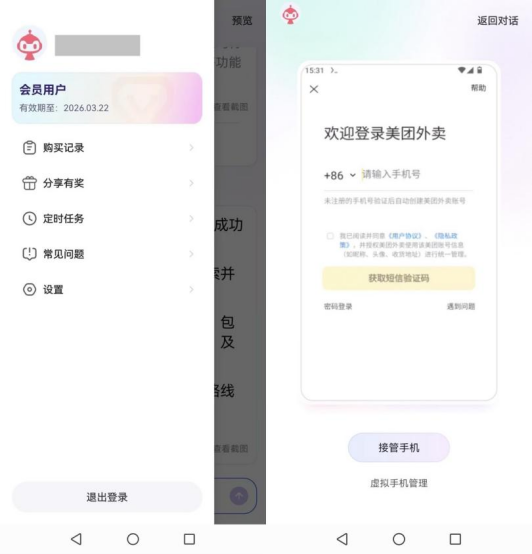 红手指Operator的界面计议终点简单,主界面为对话框,现在仅维持文本输入,不维持语音输入。左侧边栏分为购买记载、共享有奖、定时任务、常见问题以及缔造几个版本,右侧的预览按钮可检察最新任务收尾、采纳手机或绽开诬捏手机责罚。