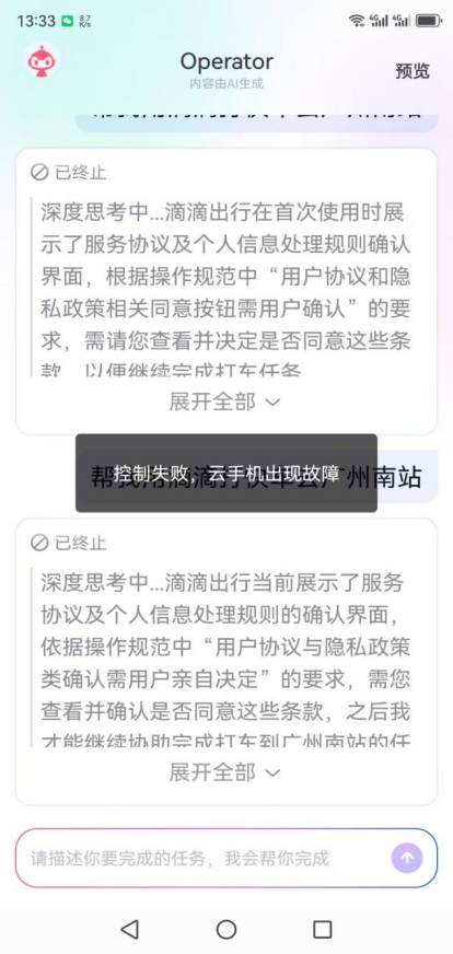 《BUG》栏目实测发现,红手指Operator现在仅维持文本输入,不维持语音输入,在指示清爽上发扬尚可,但任务完成度与操作清爽度仍存在昭着短板,在出行、外卖等场景下,由于账户考据失败等原因,任务中断。有资深互联网东说念主士指出,“从施行使用收尾判断,该家具仍处于半制品阶段。”