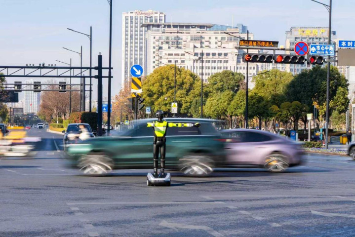 这次保障的“机器东说念主交警”主要插足杭州市萧山城区重心路口执勤,追究说念路路口交通相似、作恶劝导等责任,成为一线交警的远程赞助力量。这批由浙江中控产业信息股份有限公司研发坐褥的机器东说念主手脚平稳高效,具有轮式底盘,在履行执勤中相宜复杂路况;自主终了精确定位,依托多维传感与自动导航,按照预设的安全轨迹出入执勤点位;单次充电可运动责任超7小时,如遇交通岑岭期也不必顾忌没电。