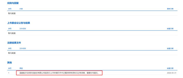 2026年3月的临了一天,上海证券来往所的审核动态更新,为火热的贸易航天赛谈投下了一枚“暂停键”。